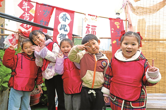 屋顶花园茶座,孩子们摆出各种POSE拍照