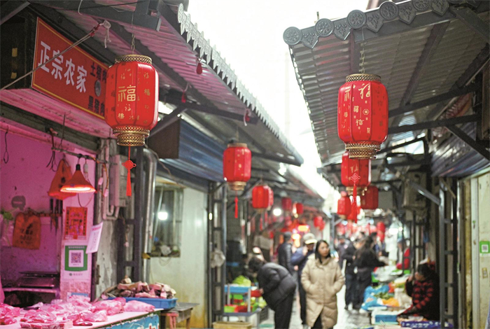 除夕前夜,南街社区的网格员和志愿者将一盏盏灯笼挂上黛瓦白墙,暖光映亮老街,也映亮居民眼中的期待。
