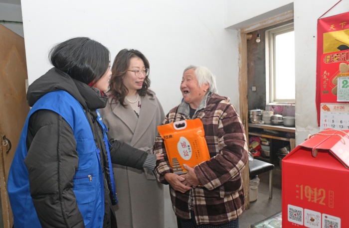 银丝面馆的工作人员为困难群众准备的年货大礼包重达5千克,里面装着酱牛腱、青鱼干、木耳、银丝咸肉、手工香肠、香菇、银丝面、葵花籽油等年味食材。慰问人员首先来到华山社区刘珍娣家中,将沉甸甸的礼包送到老人手里,还诚挚送上新春祝福。刘珍娣年近八旬,腿脚不便,平日里出门采买格外费劲。看着眼前备齐的年货,老人连声道谢:“谢谢你们惦记着我。我这下不用出门置办年货,可算省心了。”