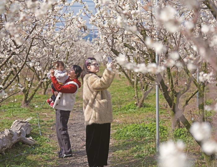 眼下,常州经开区横林镇狄坂樱桃采摘园的45亩樱桃花正迎春绽放。一簇簇洁白的花朵缀满枝头,如云似雪,美不胜收,吸引了众多游客前来踏青赏花,尽享春日浪漫。
