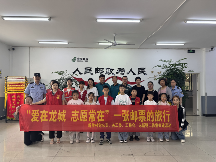 2025年5月1日,解放村党总支联合朱新财劳模创新工作室、新丰街派出所,共同组织辖区青少年走进邮政速递物流公司,开展“爱在龙城 志愿常在”邮政劳动体验活动。孩子们通过深入邮政一线岗位实践,了解邮政工作全流程,在劳动中培养责任意识,用行动践行志愿服务精神。