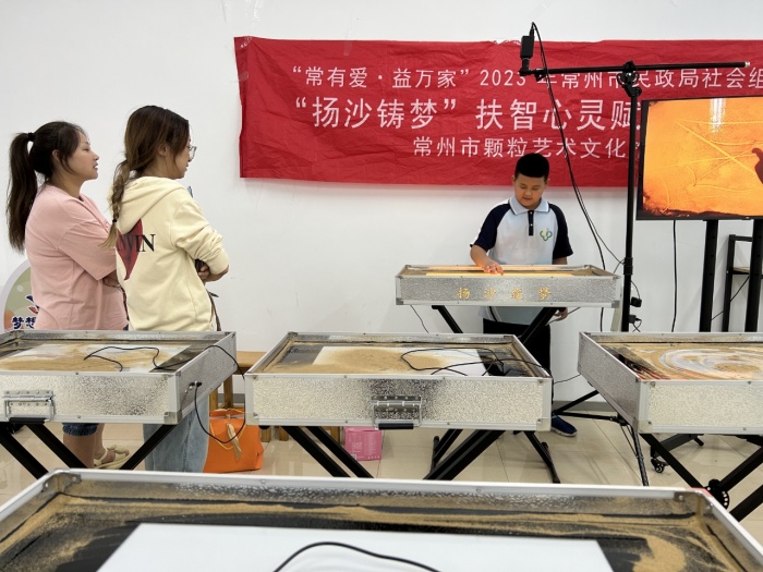 作为常州市首个以沙画为载体的特殊青少年公益服务项目,“扬沙铸梦”项目聚焦6-18岁特殊青少年,以艺术教育与心理疏导结合,利用沙画“可破坏-重构”特征,引导青少年在反复修改中提升艺术审美,帮助释放压力、建立自信。项目累计开展41场活动,服务80人次,活动被常州文明网、常州晚报等媒体报道,成为特殊教育领域创新实践案例。