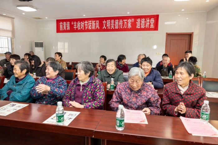 此次道德讲堂以“身边人讲身边事、身边事教身边人”的方式,让文明新风可触可感、可学可做。下一步,前黄镇将持续以道德讲堂为载体,推动移风易俗走深走实,让简约宴席、低彩礼、重节约成为新日常,共绘一幅家风正、民风淳、乡村美的文明长卷。