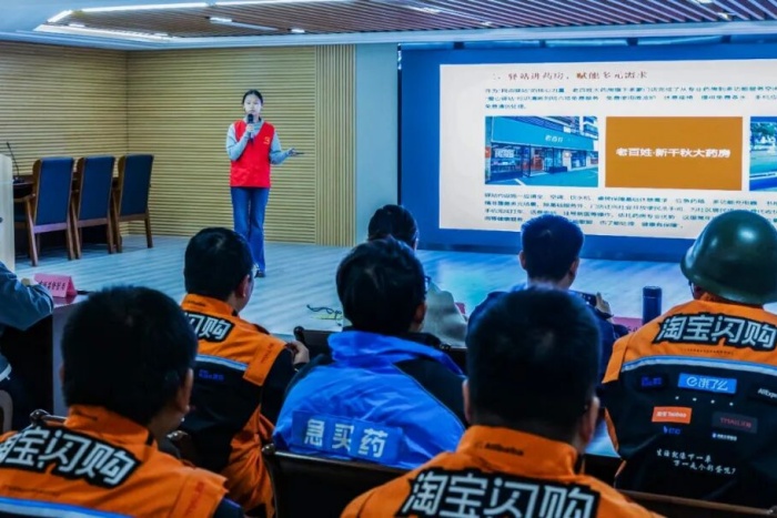 新塘社区地处金坛核心商圈,涵盖5个居民小区、1180余家商铺,常住人口1.2万余人。旺盛的服务需求吸引超3000名新就业群体在此聚集,成为城市运转的重要力量。然而,快节奏、高流动的工作特性使他们面临诸多难题,如购药不知如何选择、健康管理缺乏专业指导、就医流程不熟悉等。金坛区委社会工作部、区市场监管局、区关工委、区红十字会、东城街道妇联以新塘社区“新连新”党建引领社区治理品牌为抓手,联动小红妈爱心社等社工机构,创新构建“1个先蜂驿站+N个网点驿站”的暖新服务矩阵,将服务触角精准延伸至新就业群体最需要的地方,实现服务供给与实际需求的同频共振。