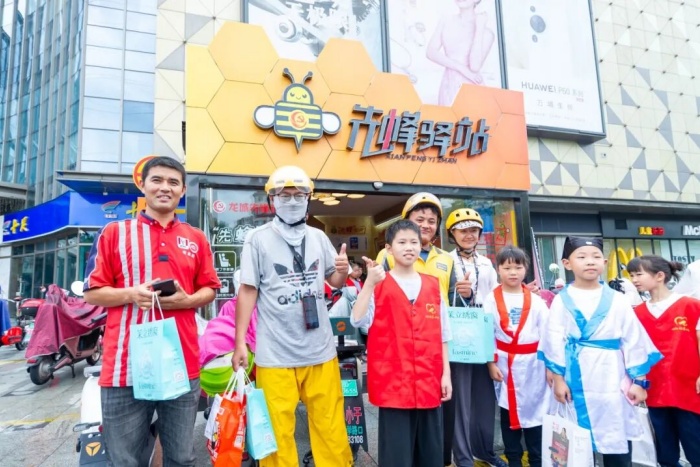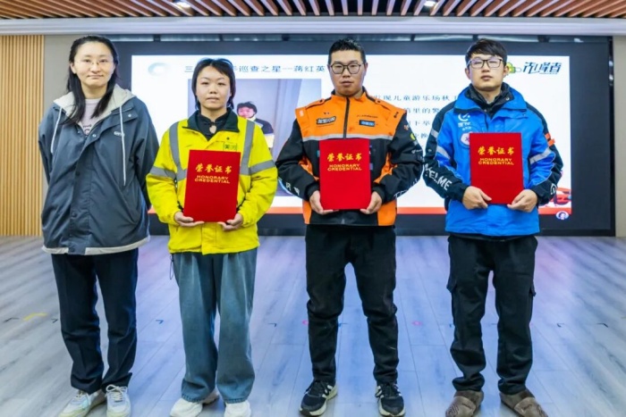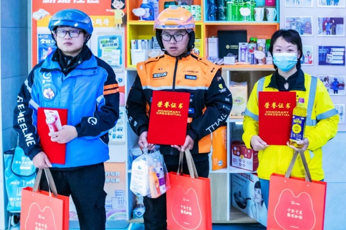 活动现场,小红妈爱心社发布“新连新”关爱计划,老百姓·新千秋大药房同步展示爱心驿站网点布局,聚焦骑手购药选择难、健康指导缺失等核心痛点,共同为骑手筑牢专业健康防护网。红妈宣讲员陈奕涵、潘一维朗诵《城市骑士》《触摸四季》等作品,用深情话语传递城市对“先蜂者”的理解与敬意。活动还对黄亮、王燕明、蒋红英等三季度“骑手巡查之星”进行表彰,以榜样力量激发群体责任意识。