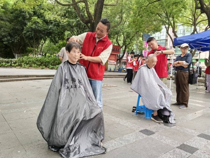 志愿者薛烨已退伍20多年,曾经学习美发专业的他把这项手艺融入到了公益服务中。上午,他一连给5位白发老人修剪了头发。“军营生活极大地磨炼了我的意志,让我在如今从事的社区工作和公益服务活动中,更有耐心和服务意识。”薛烨说。