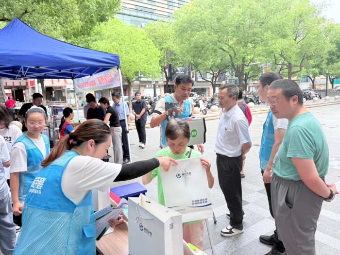 此外,“蓝手套”志愿者们还穿梭其间,给现场居民发放健康环保手册,用通俗易懂的语言有效提升居民的环保理念,助力居民养成科学健康、安全绿色的生活习惯。