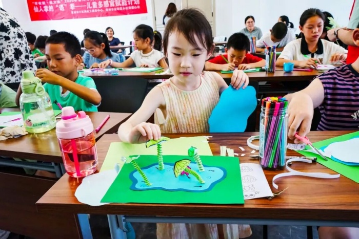 实施仙人掌的“语”季--多感官赋能计划,社工关注读写困难儿童等特殊需求,通过“视、听、触、嗅、味”五感联动,将抽象知识转化为可感知的体验,帮助孩子们突破学习困境。节气体验引导儿童听蝉鸣、摸艾草、做“发声荷池”、模拟“抢收早稻”,让二十四节气鲜活起来;无障碍互动通过声音可视化、盲文诗歌触摸唤起公众关注,孩子们还录制倡议短片,以“不打扰导盲犬”等表达传递对特殊群体的尊重;将多感官体验融入家庭劳动和社区治理,开展“厨房交响曲”“家・艺坊”“收纳美学课”“食材魔法课”等活动,五感与家务绑定融合;“楼道整理行动”组织亲子家庭走进社区物业、楼栋单元,通过“查找安全隐患”“绘制逃生路线”等微行动,有效提升亲子家庭参与社区事务的积极性。“小小楼道长”行动获评“常州市未成年人思想道德建设标兵项目”。