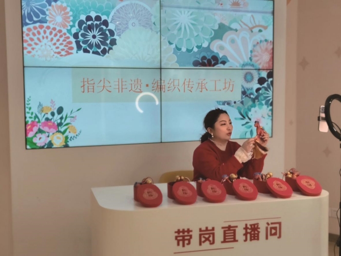 如今,河海社区组建起了一支宝妈编织队。潘丽丽还将手工编织与数字直播创新结合,开展线上直播教学45场,覆盖群众1000余人次。同时,社区联动辖区企业“乐龄枝秀”,搭建起“教学—生产—销售”完整链条,带动成品销售3000余件,助力宝妈们人均月增收1100余元。