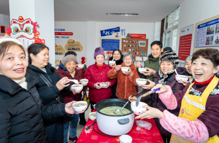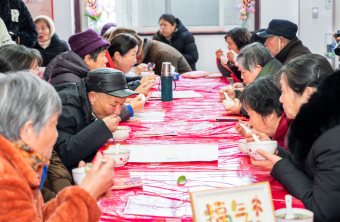 腊八喝腊八粥,是刻在中国人骨子里的习俗,而东苑小区的这碗粥,却藏着一段跨越二十年的传承。“东苑是个典型的老龄化小区,不少老人独居,自己熬一锅粥吃不完,煮少了又少了几分年味儿。”小东门桥社区党总支书记蒋英英告诉记者,2006年起,社区老党员杨奶奶便记挂着邻里们,每到腊八,都会熬上满满一大锅腊八粥,挨家挨户喊邻里小姊妹来吃,小小的屋子里挤满了人,欢声笑语,暖意融融。一年又一年,杨奶奶的邀约从未间断,久而久之,邻里们也形成了默契——每到腊八这天,大家都会主动带上自家的锅碗、添上些食材,不约而同地聚到杨奶奶家“蹭饭”。一碗粥,拉近了邻里间的距离,也熬出了家人般的情谊。